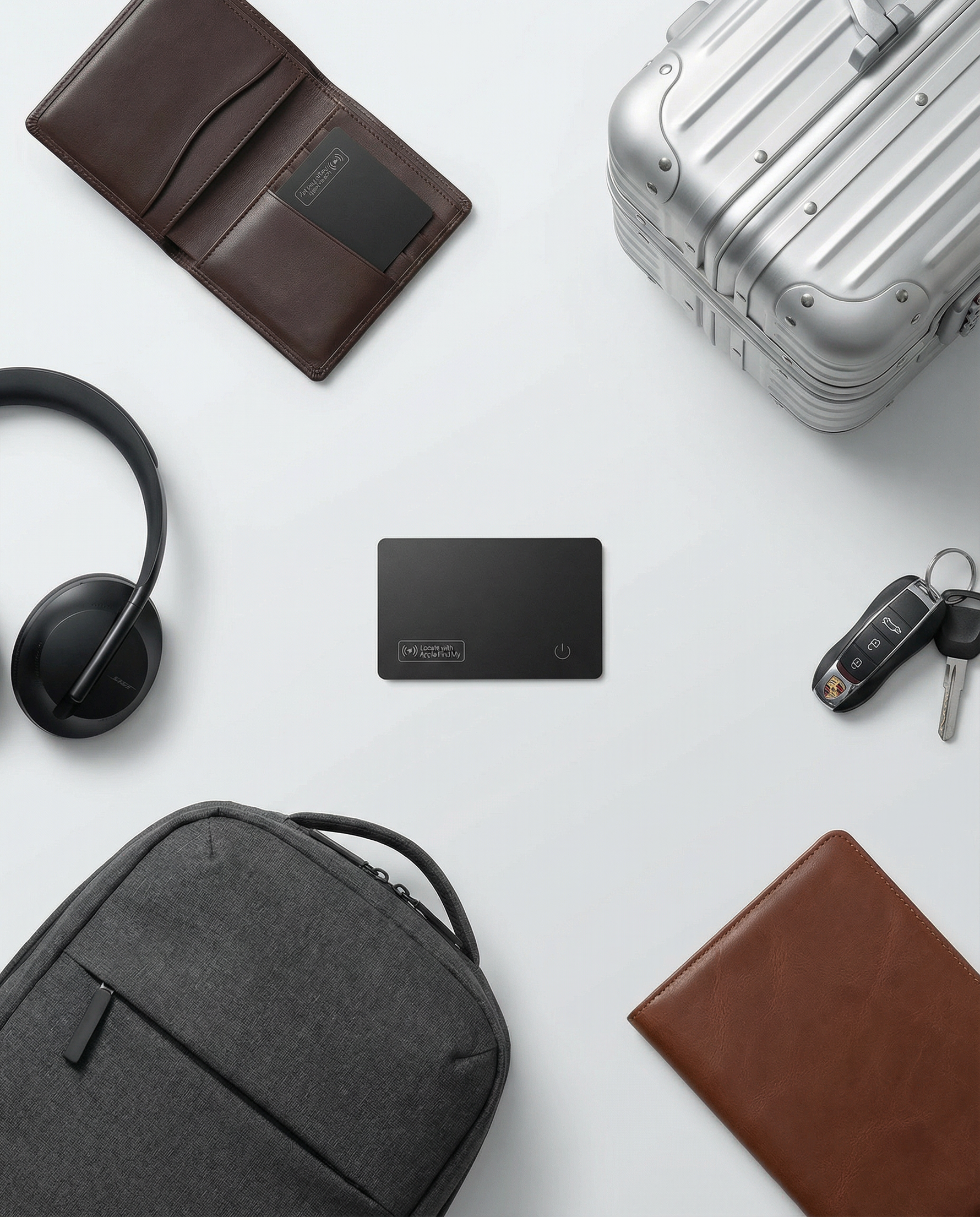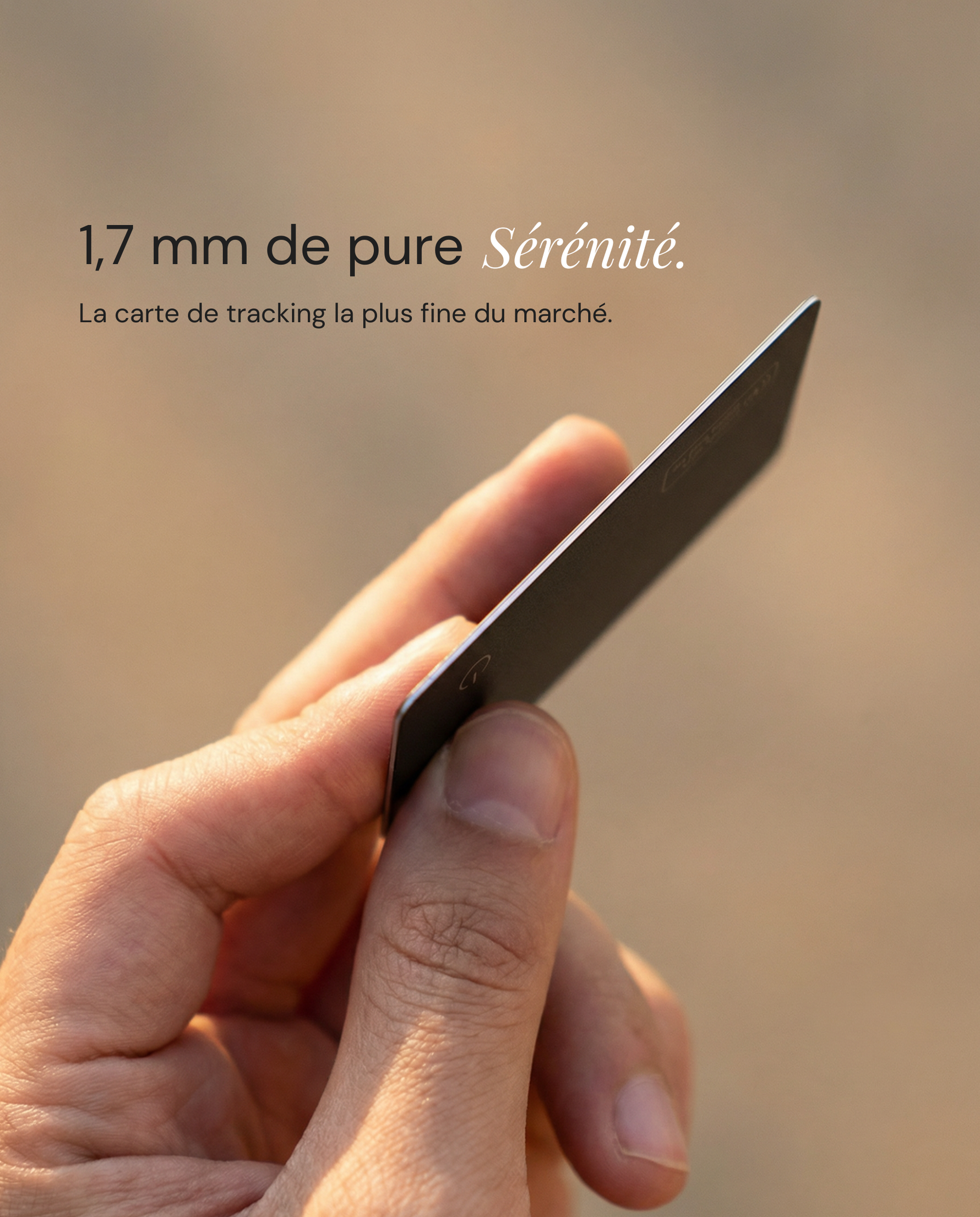 Ultra‑fine, rechargeable et compatible Apple Find My. Glissez-la dans votre portefeuille, valise ou sac, et retrouvez vos affaires en quelques secondes.