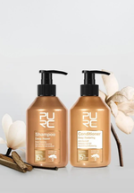 Le shampoing nettoie en douceur sans agresser le cuir chevelu ni décaper la fibre. L’après-shampoing revitalise, démêle et reconstruit la structure capillaire.